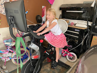 I got PJ a Peloton for Christmas and Lilly has taken to riding it while watching on her iPad. |